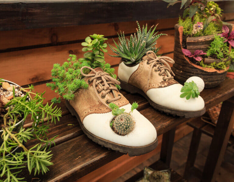 Vi er nødt til at være kreative og innovative; en anden original måde, hvorpå vi kan have planter derhjemme, er ved at putte dem i støvler og sko.